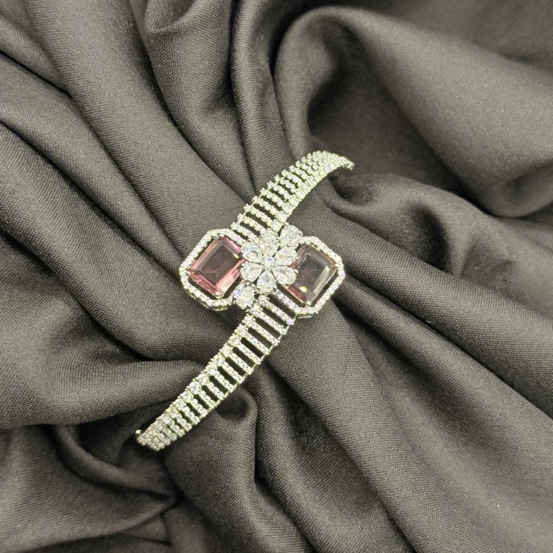 ₹1,925.00Original price was: ₹1,925.00.₹1,836.00Current price is: ₹1,836.00.LALEEZ Fashion Jewellery | Silver-Tone Pink Crystal Floral Duo Designer Open Cuff Bracelet | Ideal for Women – 124