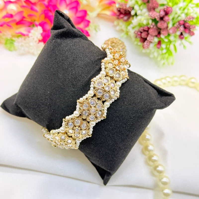 ₹899.00Original price was: ₹899.00.₹873.00Current price is: ₹873.00.LALEEZ Fashion Jewellery | Gold-Plated Floral Cluster Crystal & Pearl Designer Cuff Bracelet | Ideal for Women – 130