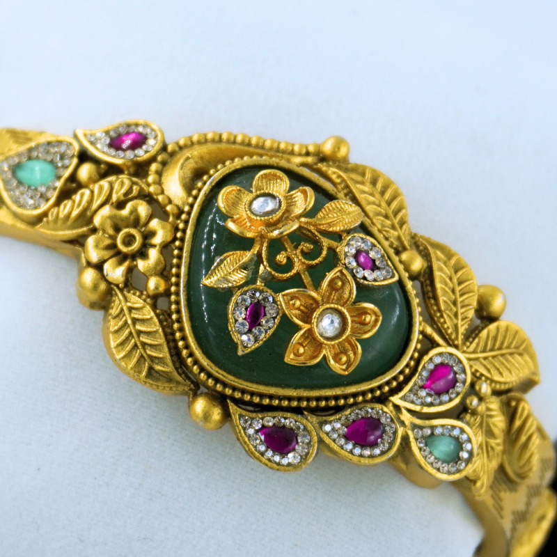 LALEEZ Fashion Jewellery | Antique Gold-Plated Floral Temple Dome Kundan Ruby-Emerald Bracelet | Ideal for Women – 111