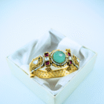 ₹2,287.50This vintage-inspired bangle features intricate meenakari work with floral motifs, highlighted by ruby-green stones for a royal finish. Perfect for festive wear, it adds a luxurious […]