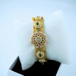 November 19, 2025This exquisite bracelet showcases an emerald-toned central frame adorned with intricate floral meenakari and ruby accents. Its detailed craftsmanship and regal aura make it a standout accessory for festive, wedding, and traditional celebrations.