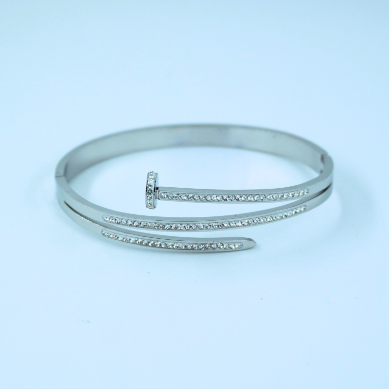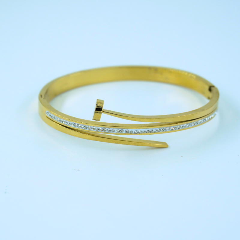 LALEEZ Fashion Jewellery | Premium Dual-Tone Crystal-Embedded Modern Nail-Style Cuff Bracelet Set | Ideal for Women – 113
