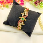LALEEZ Fashion Jewellery | Gold-Plated Kundan Peacock Motif Multicolor Stone Designer Cuff Bracelet | Ideal for Women – 131