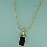 LALEEZ Fashion Jewellery | Gold-Plated Navy Blue Rectangular Stone Pendant Chain | Ideal for Women – 118