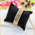 ₹1,932.00This heritage-inspired bracelet features a carved emerald-toned centerpiece bordered with ruby stones and highlighted by kundan detailing. Its ornate craftsmanship and luxurious antique finish make it […]