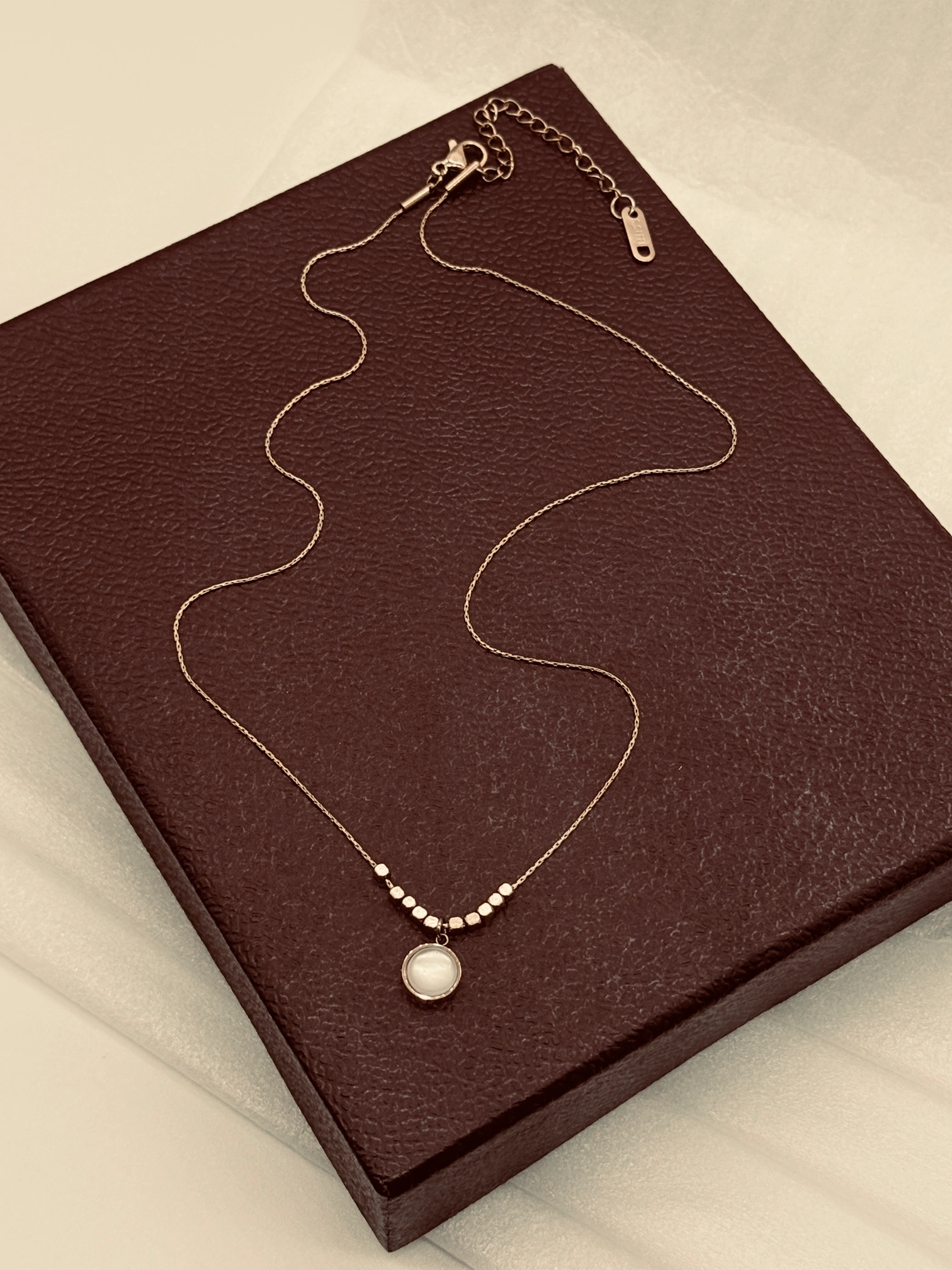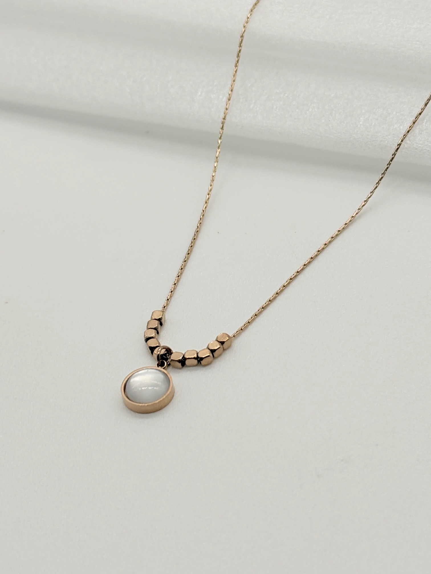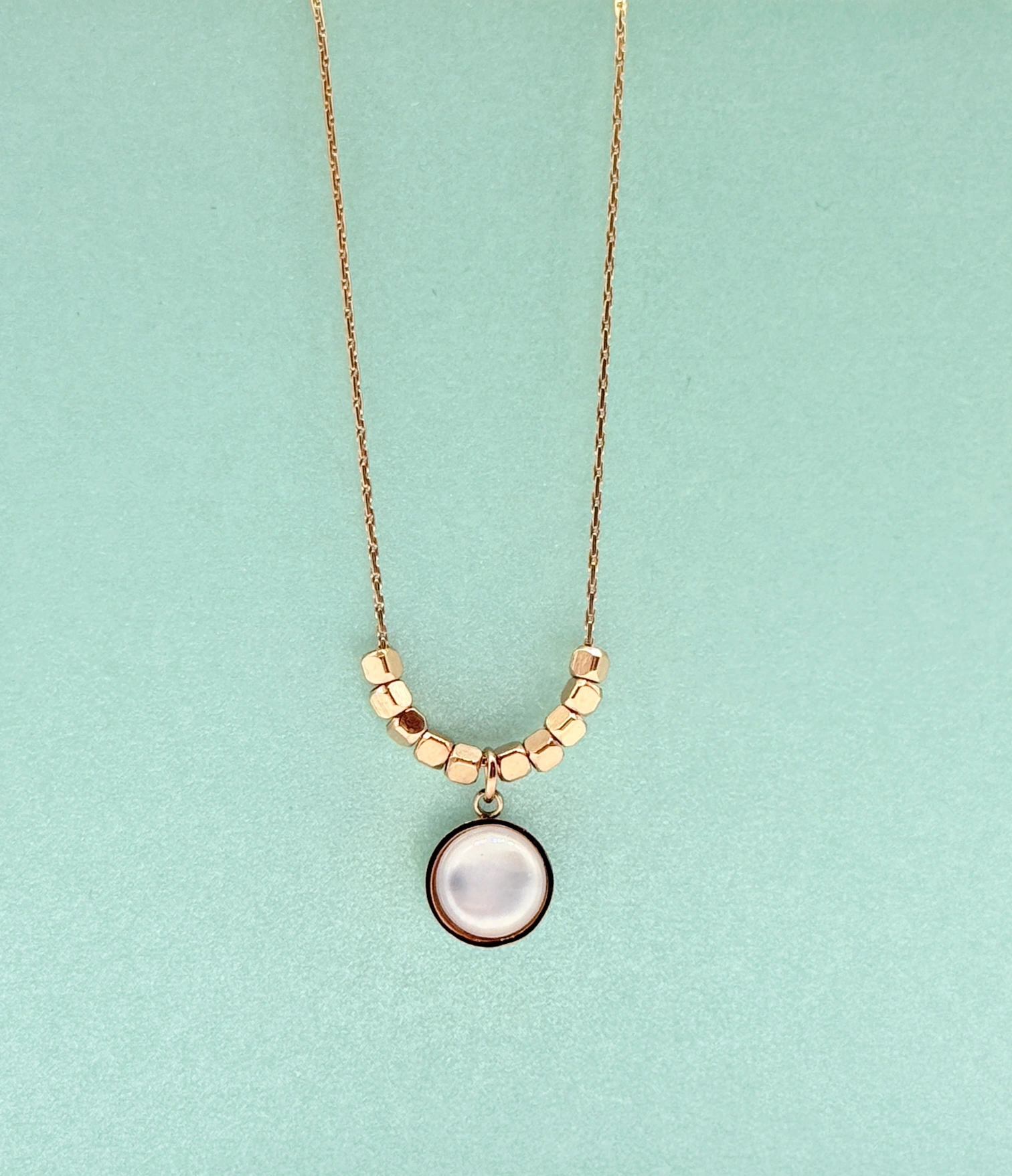 March 9, 2026This elegant chain features a classic round pearl-style pendant beautifully paired with modern geometric gold-plated beads. The delicate chain and soft pearl accent create a timeless and graceful look. Perfect for daily wear or special occasions, it adds a touch of sophistication and charm to any outfit.