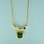 LALEEZ Fashion Jewellery | Gold-Plated Emerald Green Square Stone Geometric Bead Pendant Chain | Ideal for Women – 114