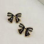 LALEEZ Fashion Jewellery | Gold-Plated Black Enamel Bow Accent Stud Earrings | Ideal for Women – 109