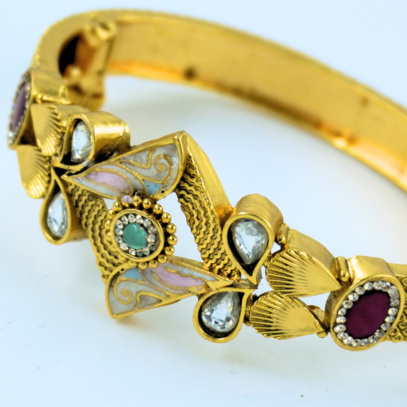 LALEEZ Fashion Jewellery | Antique Gold-Plated Floral Meenakari Statement Bangle Bracelet | Ideal for Women – 102