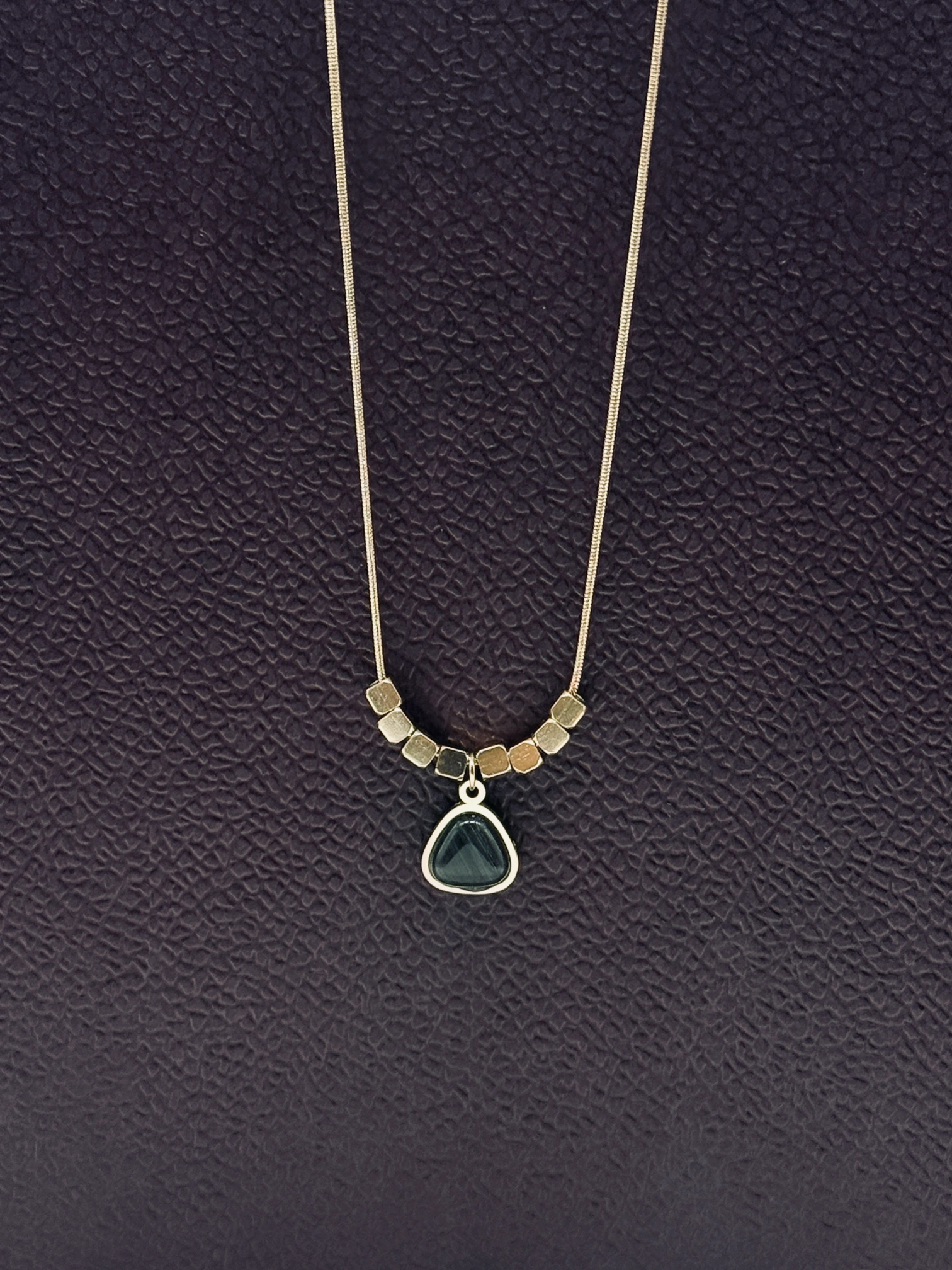 This elegant chain features a rich emerald green square stone pendant beautifully framed in a gold-plated setting with stylish geometric beads. The sleek chain and vibrant […]