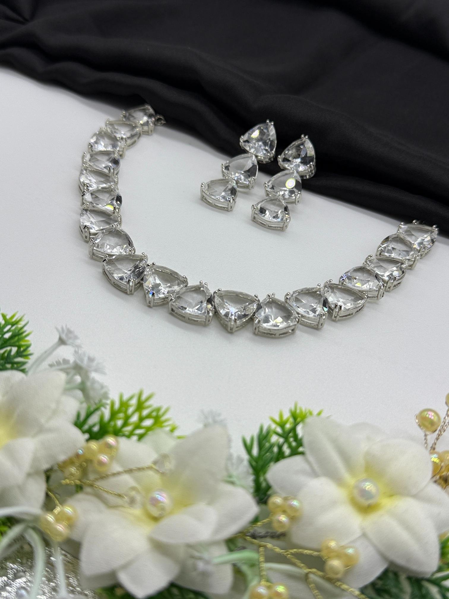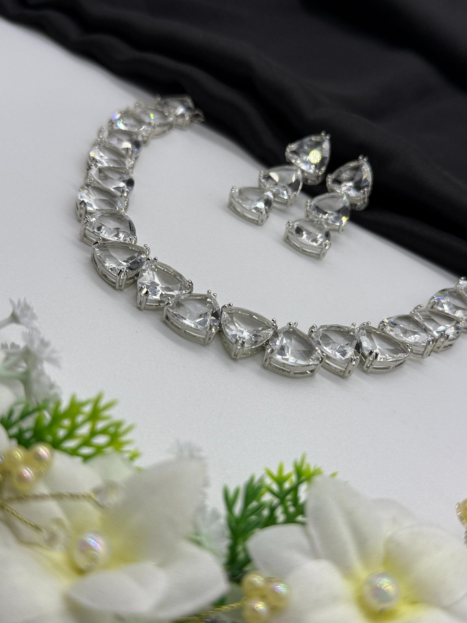 LALEEZ Fashion Jewellery | Silver-Plated Clear Crystal Teardrop Elegant Necklace Set | Ideal for Women – Series 104