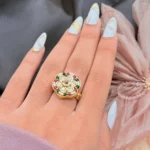 LALEEZ Fashion Jewellery | Gold-Plated Round Floral Kundan Statement Ring with Multicolor Stone Detailing | Perfect Festive & Wedding Wear for Women – 120