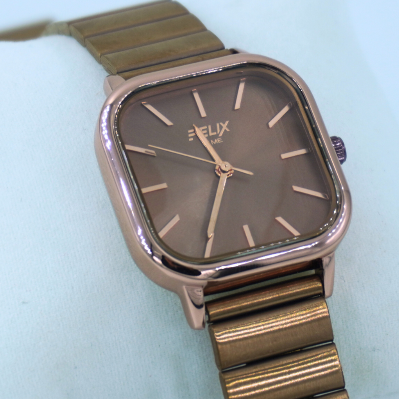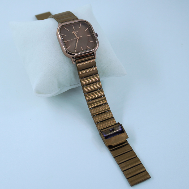 This stylish bronze-brown square dial watch blends a soft metallic tone with a sleek minimalist design. Its smooth metal strap and premium finish make it perfect for office wear, casual outings, and everyday elegance.