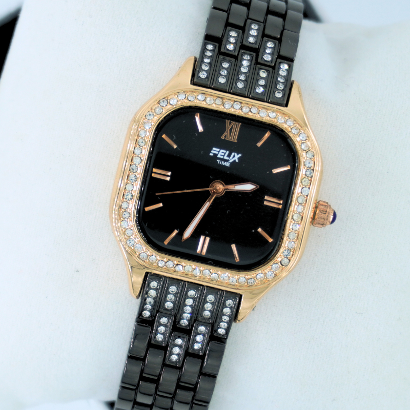 Experience elegance in every moment with the LALEEZ Black Dial Two-Tone Bracelet Watch. Designed for women who adore a blend of luxury and modern charm, this timepiece features a stunning square dial framed with sparkling stones and a sleek black & gold dual-tone strap. Its minimalist black face with rose-gold markers adds a sophisticated touch, making it perfect for daily wear or special occasions. Durable, stylish, and effortlessly classy—this watch elevates any outfit with timeless grace.