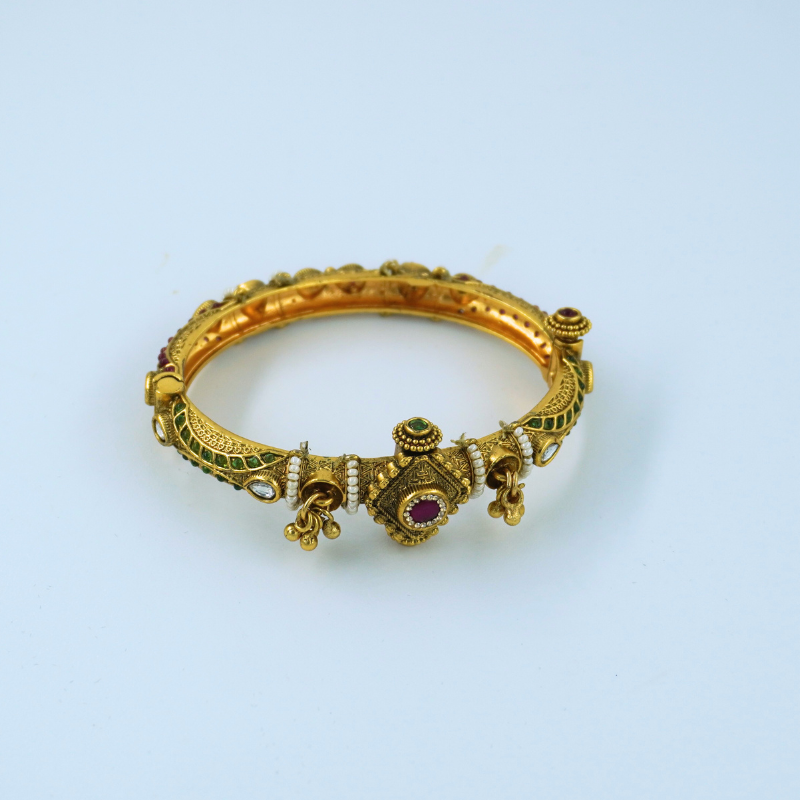 LALEEZ Fashion Jewellery | Antique Gold-Plated Floral Temple Dome Kundan Ruby-Emerald Bracelet | Ideal for Women – 111